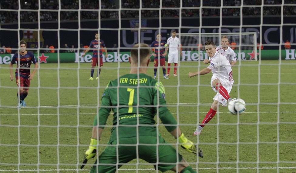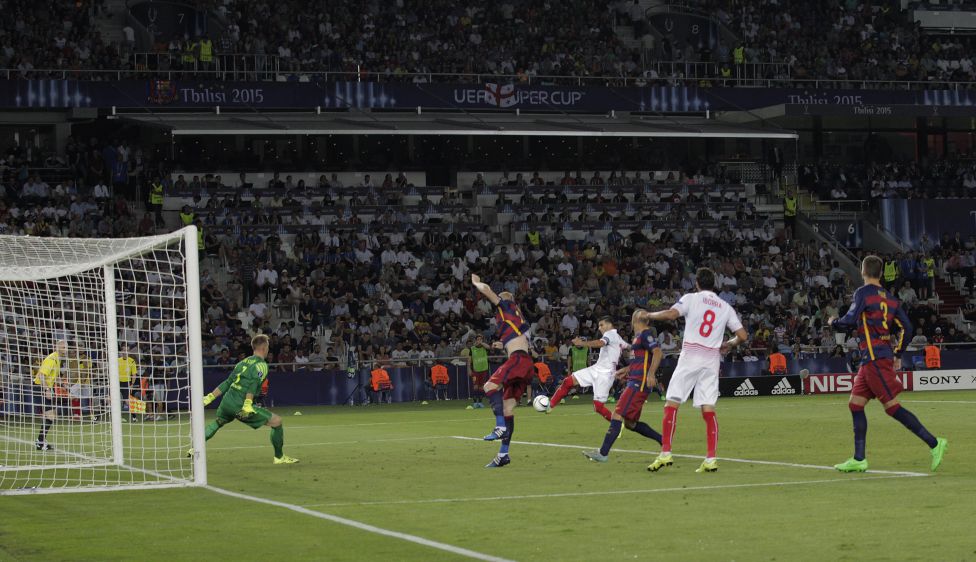 دو تیم بازی را هجومی آغاز کردند و تنها سه دقیقه از بازی سپری شده بود که اور بانگا، سویا را پیش انداخت. خطای خاویر ماسکرانو، یک ضربه آزاد را پشت محوطه جریمه بارسا نصیب سویا کردو بانگا با یک ضربه تماشایی، تراشتگن را مغلوب کرد. این برتری تنها 4 دقیقه پایدار ماند و در …