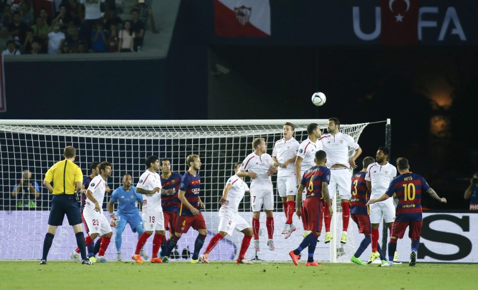 این برتری تنها 4 دقیقه پایدار ماند و در دقیقه 7، لیونل مسی کار را به تساوی کشید. یک ضربه آزاد پشت محوطه جریمه سویا اعلام شد و این بار نوبت مسی بود که تخصص اش روی این ضربات را نشان بدهد.