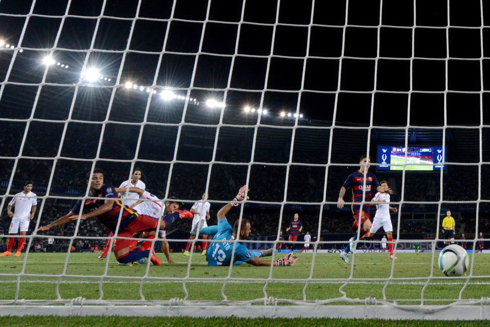 ضربه آزاد مسی توسط دروازه سویا برگشت داده شد اما پدرو توپ برگشتی را با حضوری به موقع وارد دروازه حریف کرد. در دقایق باقی مانده شاگردان اونای امری تلاش زیادی برای زدن گل تساوی انجام دادند اما تلاش آنها ثمری نداشت و بارسا فاتح سوپرکاپ اروپا شد.