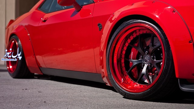 برای امروز تصاویری از یک هل کت زیبا را مشاهده می کنیم که با افزودن کیت فندر ظاهری خاص تر به خود گرفته است. نقطه اوج زیبایی این چلنجر رینگ های پی یو آر ال جی 06 آن است که در همان نگاه اول مخاطب را برای دقایقی درگیر خود می کند و اساسا هدف از این پروژه معرفی رینگ های مذکور عنوان شده است. رینگ سه تکه ای پی یو آی ال جی 06 با رنگ مشکی مات در قسمت میانی و قرمز آتشین براق برای سایر قسمت ها، در اندازه 20 اینچ ارائه و با عمق متغیر در چرخ های جلو و عقب شده است. در این میان تجهیزات سیستم ترمز برمبو هماهنگی بسیار زیبایی با رینگ ها ایجاد کرده است.