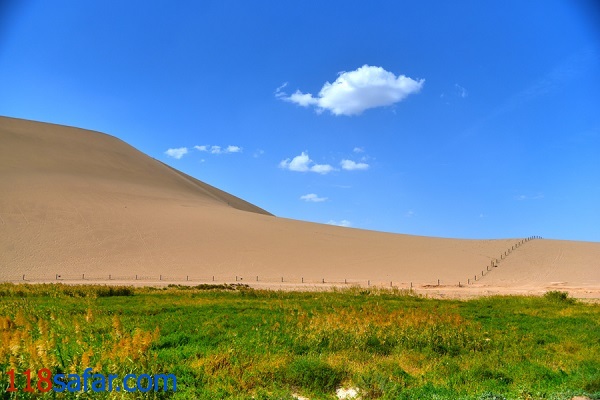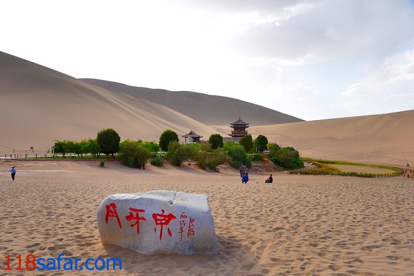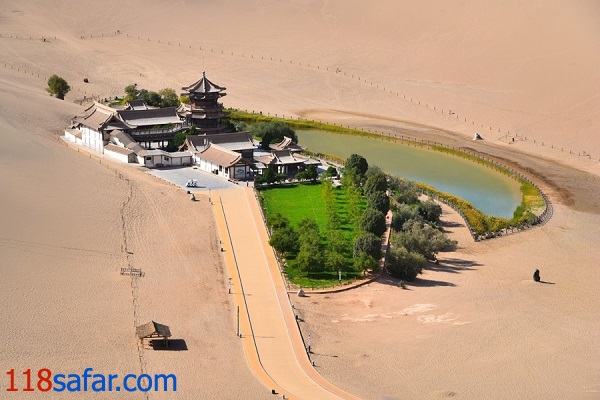 موبنا – امروز می خواهیم چشم اندازی به معنای واقعی بی نظیر را به شما معرفی کنیم. دریاچه کرسنت، دریاچه ای هلالی شکل واقع در 6 کیلومتری جنوب شهر دون هوانگ، استان گانسو چین است. دلیل شکل جالب این دریاچه را جهت باد می دانند که سبب جا به جایی شن های بیابان و ایجاد چنین منظره ای شده است. دون هوانگ نیز از جمله مهم ترین توقف گاه های جاده ابریشم بوده است و شهرت آن بیشتر از وجود غار موگای نشات می گیرد. اگر بر فراز تپه های شنی اطراف قرار بگیرید، با یکی از جذاب ترین چشم انداز هایی که در تمام طول عمر خود دیده اید، مواجه خواهید شد. دانه های ماسه ای این تپه ها، هنگامی که آسمان دون هوانگ با ابر های تیره پوشیده می شود، رنگ طلایی خود را به نمایش می گذارند. طلوع و غروب خورشید در این منطقه، به راستی هر چشمی را خیره خود می کند.