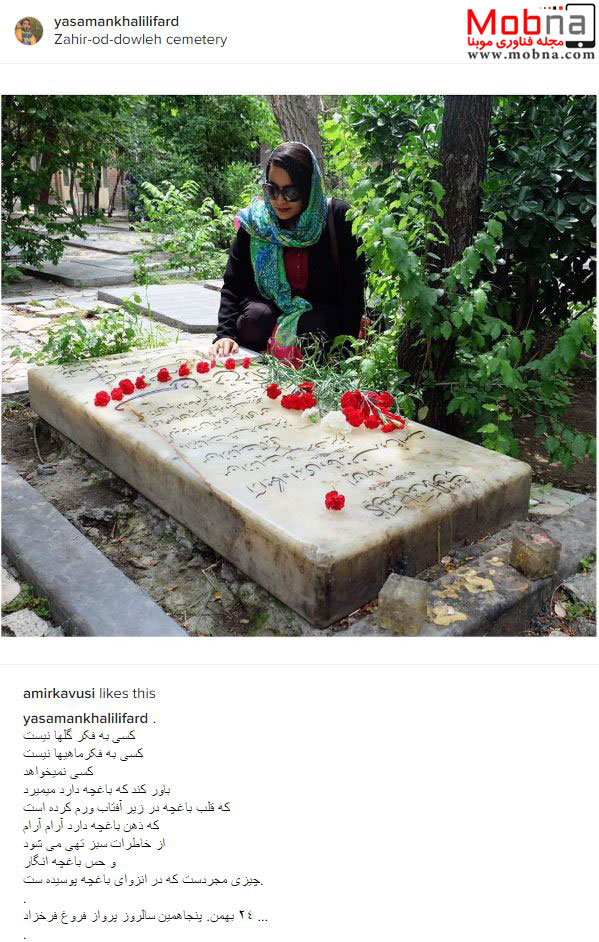 یاسمن خلیلی فرد بر سر مزار فروغ فرخزاد (عکس)