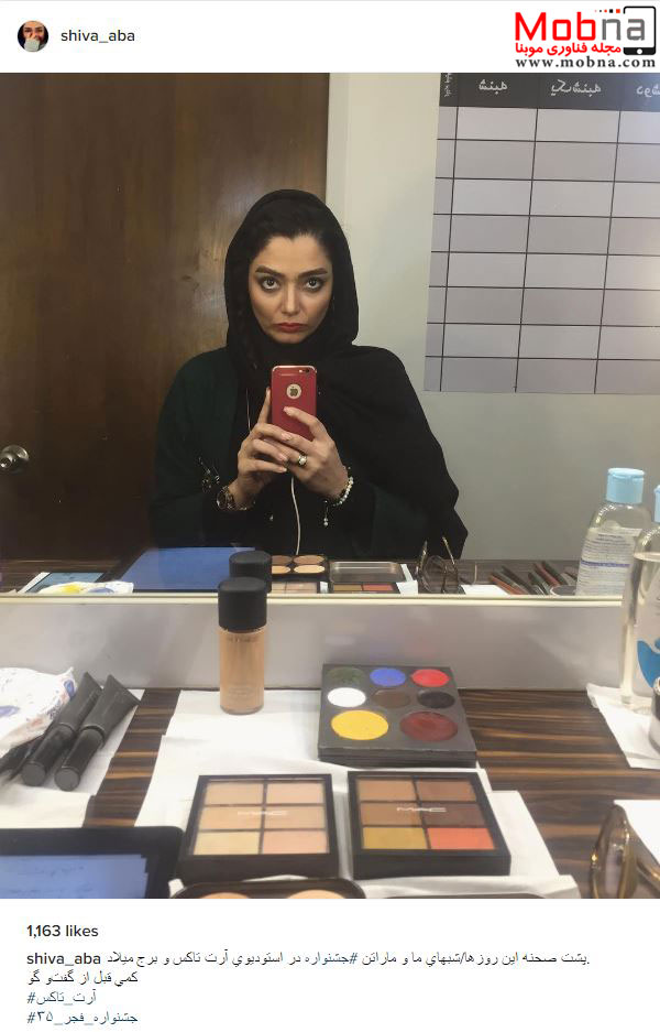 سلفی آینه ای شیوا آبا در اتاق گریم (عکس)
