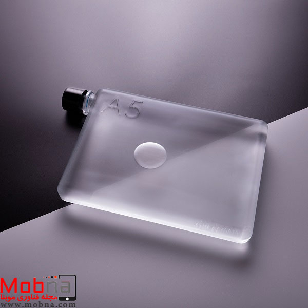 A5 درست شبیه یک برگ کاغذ است. هنگامی که پر باشد، ابعادی معادل کاغذ A5 داشته و می تواند به راحتی داخل کیف شما، لا به لای کاغذ ها، کتاب ها و یا کنار لپ تاپ تان قرار گیرد. این محصول مبتکرانه ۲۹ دلار قیمت و از نظر اندازه ۹.۵۷ در ۵.۸ در ۱.۱۸ اینچ ابعاد دارد. جنس بطری ها پلاستیکی و عاری از مواد مضر به حجم ۷۵۰ میلی لیتر است. این بطری ها که اساسا تایوانی هستند، قابل استفاده ی مجدد بوده و نسبت به یخ زدگی و همچنین حرارت تا دمای ۷۰ درجه ی سانتی گراد، مقاوم اند.