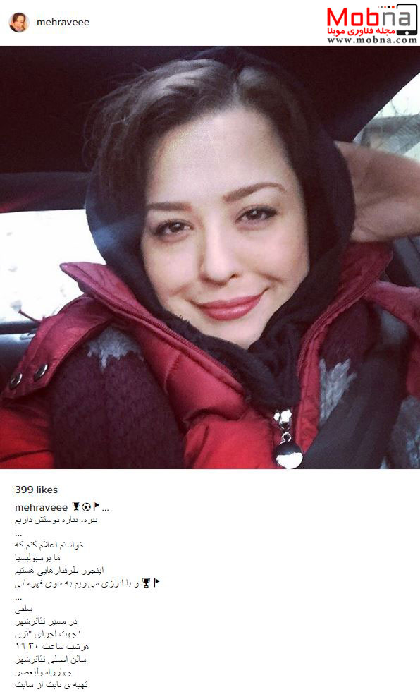سلفی تو ماشینی مهراوه شریفی نیا با پوشش زمستانه (عکس)