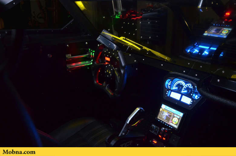 برای سوار شدن به این خودرو مرتفع باید از بدنه آن بالا بروید و زمانی که درب آن را به سمت بالا باز میکنید، امکانات زیر را در کابین اصلی آن خواهید یافت: سیستم تهویه مطبوع، سیستم صوتی فراگیر، و صندلیهای مجهز به روکش چرم. این خودرو به کمک سیستم الکترونیکی کنترل میشود و زمانی که فرمان آن معادل یکچهارم به هر سمت میچرخد، قفل میشود تا بدنه خودرو به طور کامل به همان سمت هدایت شود. برای این خودرو منحصر به فرد پنجره کناری در نظر گفته نشده است و از دیگر قابلیتهای آن میتوان به دوربین عقب و نمایشگر مخصوص پخش تصاویر دوربین اشاره کرد.