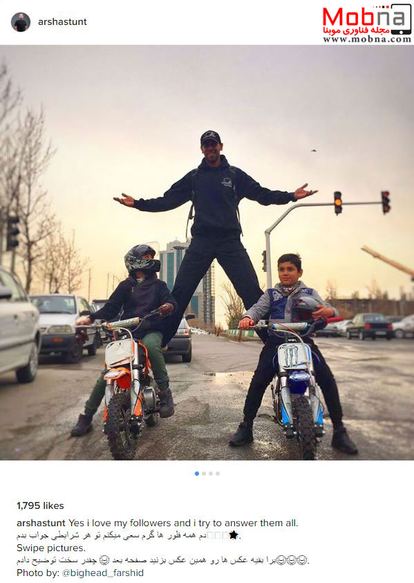 حرکت نمایشی ارشا اقدسی با کودکان موتورسوار (عکس)