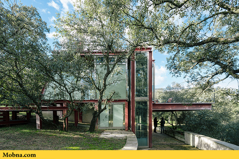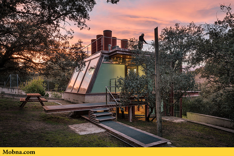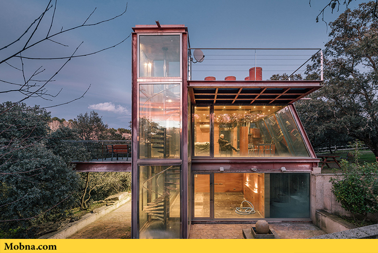 موبنا، رضا خواجهوند – شرکت معماری «پِنِلاس آرشیتکت» در یکی از مناطق مرکزی اسپانیا خانه کوچک طراحی کرده است که در قالب یک منطقه دور افتاده و ساکت میتواند برای کسب آرامش مورد استفاده قرار گیرد. این خانه در نزدیکی شهر مادرید بنا شده است و از آن با نام «عمارت پنهان» یاد میشود. این خانه در میان جنگل بنا شده است و به صورت کاملا مستقیم با درختهای پیرامون خود در ارتباط است. فضای داخلی خانه از سه ماده اصلی ساخته شده است: فولاد ضدزنگ برای چارچوب اصلی ساختمان، شیشه در قسمت نما، و چوب درخت گیلاس برای فضای داخلی.