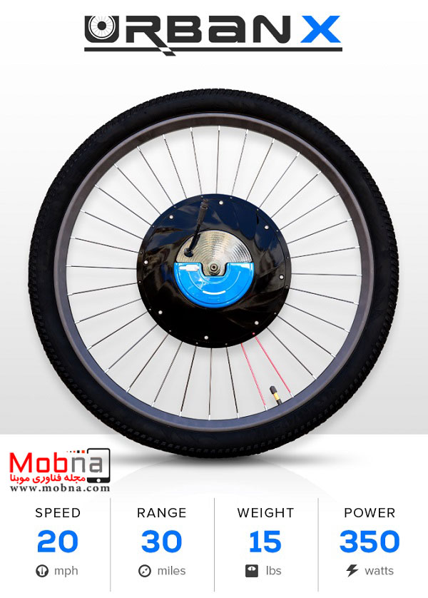 UrbanX چرخی حرفه ای با قابلیت تبدیل دوچرخه ی معمولی به دوچرخه ی الکتریکی است که در شش سایز مختلف ۲۴″, ۲۶″, ۲۷.۵″, ۲۹″, ۶۵۰c , 700c تولید شده و طوری طراحی شده است که با ۹۹ درصد از دوچرخه های موجود در بازار همخوانی دارد. علاوه بر این هر فردی می تواند این چرخ را به راحتی ظرف کمتر از یک دقیقه بر دوچرخه ی خود نصب کند. استفاده از آلومینیوم درجه ی هواپیما به این چرخ استحکام و دوام مناسبی بخشیده است. چرخ UrbanX مجهز به یک موتور الکتریکی ۲۴۰ و یا ۳۶۰ واتی و همچنین یک باتری یون لیتیم ۳۵۰۰ میلی آمپری است که به شما اجازه ی سواری با حداکثر سرعت ۱۵ مایل در ساعت تا مسافت ۳۰ مایل را می دهد. بسته به قدرت موتور، این سرعت می تواند به ۲۰ مایل در ساعت نیز برسد.
