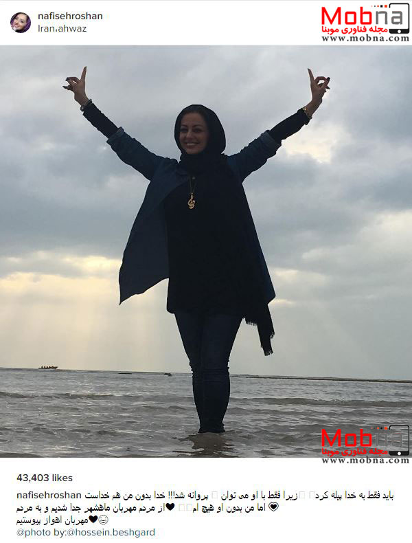 پوشش متفاوت نفیسه روشن در سواحل اهواز (عکس)