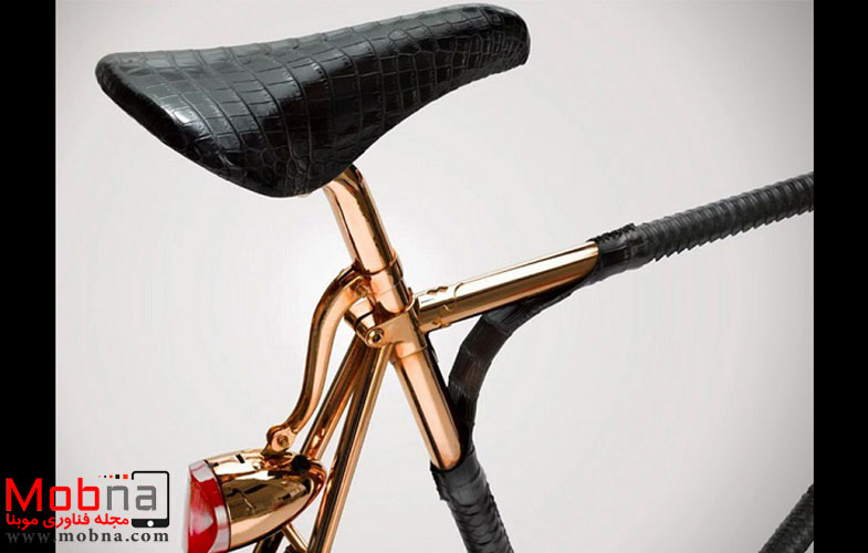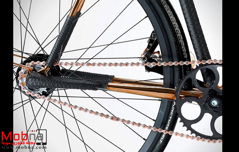 موبنا، رکسانا دانیالی – جزئیات مختلف در ساخت این دوچرخه به اندازه ای دقیق لحاظ شده اند که می توان آن را برای حضور در موزه های هنری بسیار مناسب دانست. قسمت زین نیز مزین به پوست تمساح ۱۰۰ درصد طبیعی بوده که همراه با بخش هایی که با پوست مار پوشش داده شده اند، حسی کاملا متفاوت را در اختیار علاقه مندان قرار می دهد. تمام اجزای این دوچرخه ی لوکس دست ساز هستند و بدون دخالت ماشین آلات مختلف ساخته شده اند.