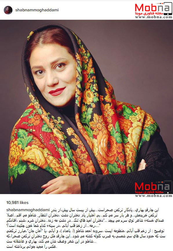 پوشش جالب شبنم مقدمی با چارقد بهاری ترکمن (عکس)