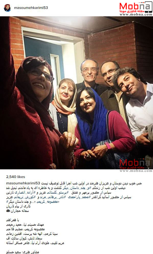 سلفی معصومه کریمی به همراه هنرمندان در پشت صحنه یک نمایش (عکس)