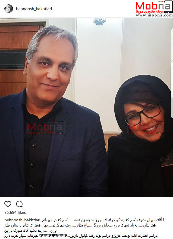 سلفی بهنوش بختیاری به همراه مهران مدیری در مراسم افطاری (عکس)