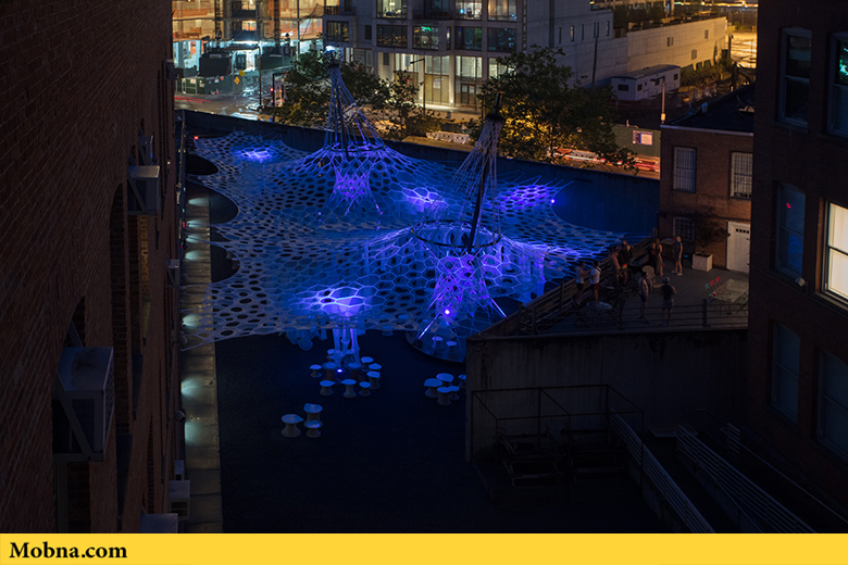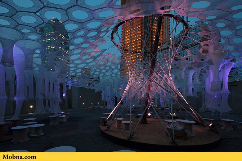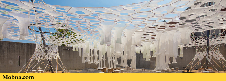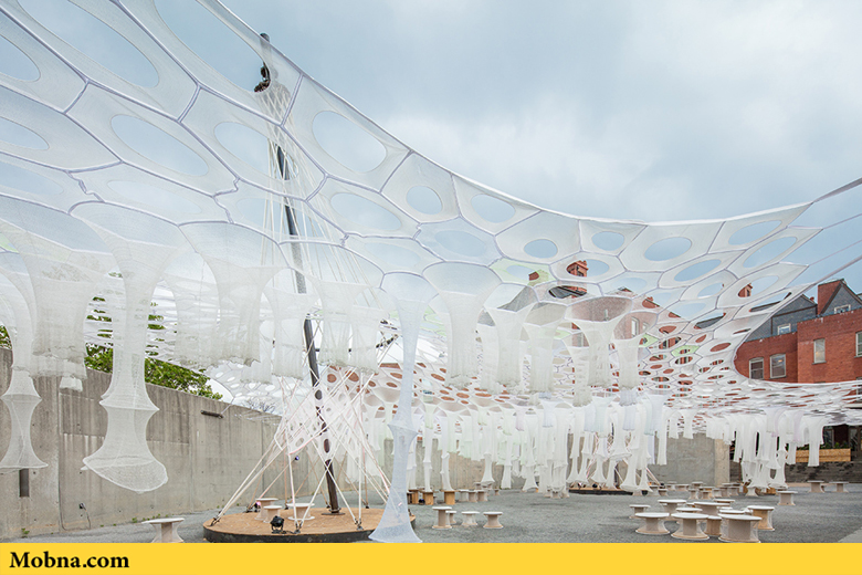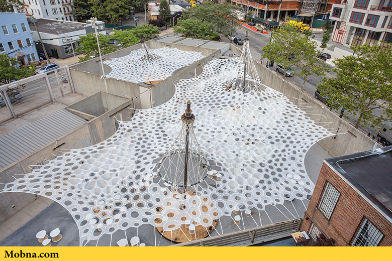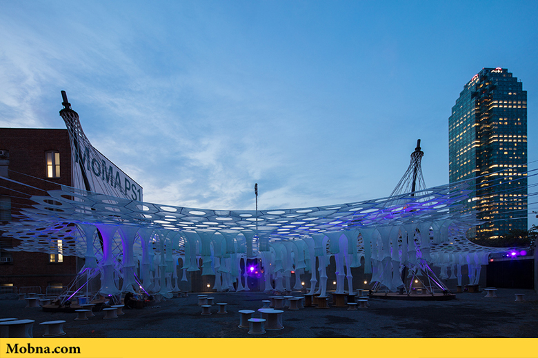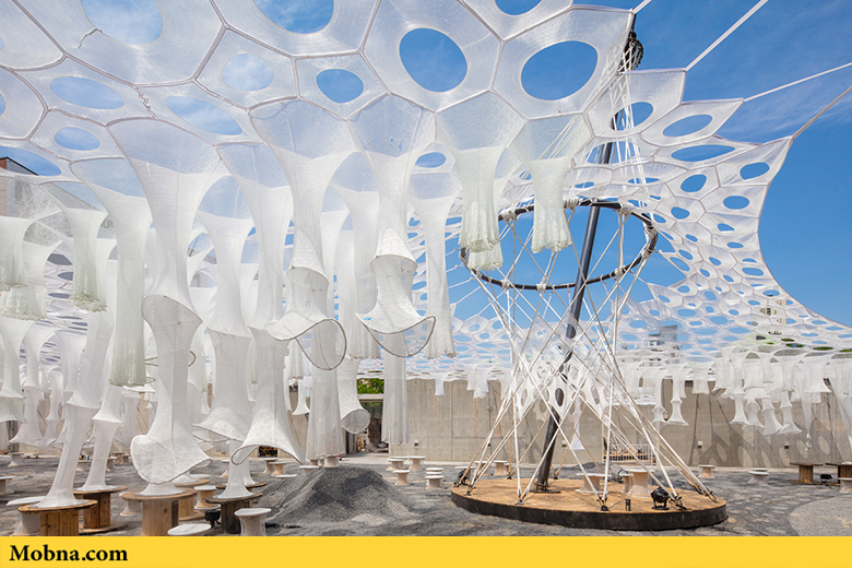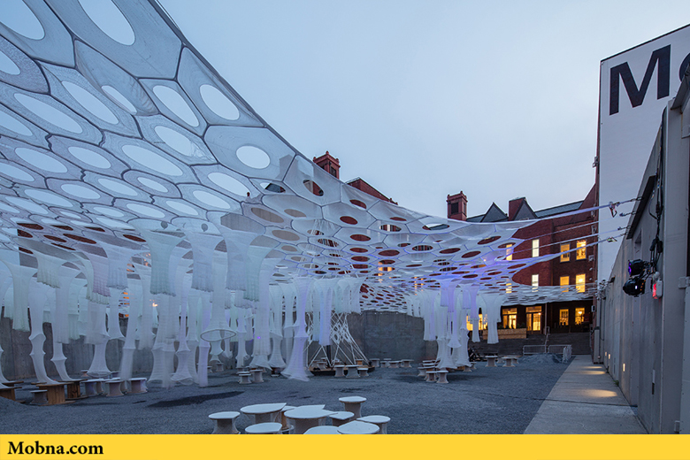 موبنا, رضا خواجه وند – «جِنی سابین استدیو» در مرکز MoMA PS1 در شهر نیویورک یک بنای زیبا و منحصر بهفرد ساخته است که توجه همگان به آن جلب میشود. این سالن موقت در فضایی به وسعت یک میلیون یارد با فیبرهای که به صورت دیجیتالی بافته شدهاند، ساخته شده است و در آن ۱۰۰ عدد صندلی ساخته شده از مواد بازیافتی هم به چشم میخورد. این سالن که قرار است تا پایان تابستان در معرض دید عموم قرار گیرد بر اساس یک سیستم یکپارچه طراحی شده است که فضای لازم برای حضور بازدیدکنندگان را در اختیار آنها میگذارد و به صورت طبیعی بدون استفاده از هر گونه سیستم الکترونیکی خنک میشود.