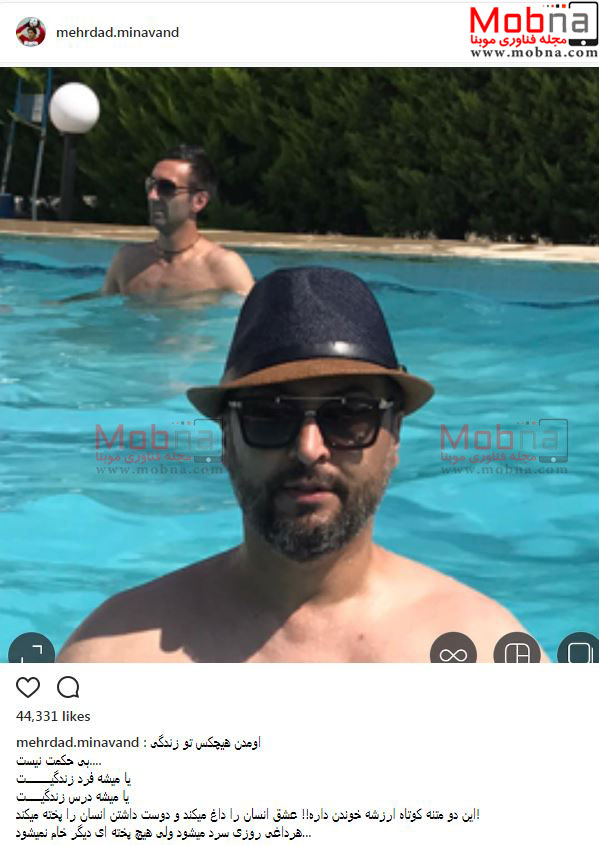 تیپ جالب آب تنی مهرداد میناوند در استخر (عکس)