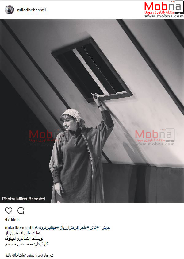 پوشش و گریم مهتاب ثروتی در نمایش ماجرای متران پاژ (عکس)
