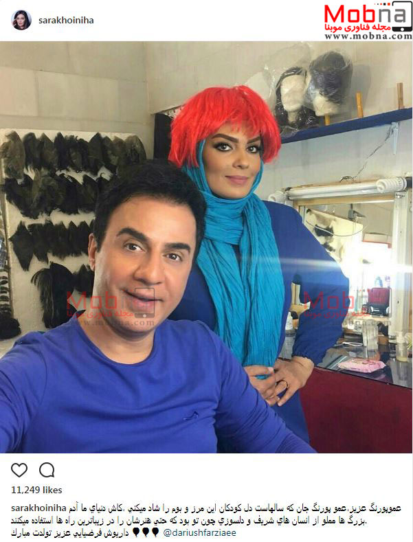 تیپ جالب سارا خوئینی ها و عمو پورنگ در اتاق گریم (عکس)