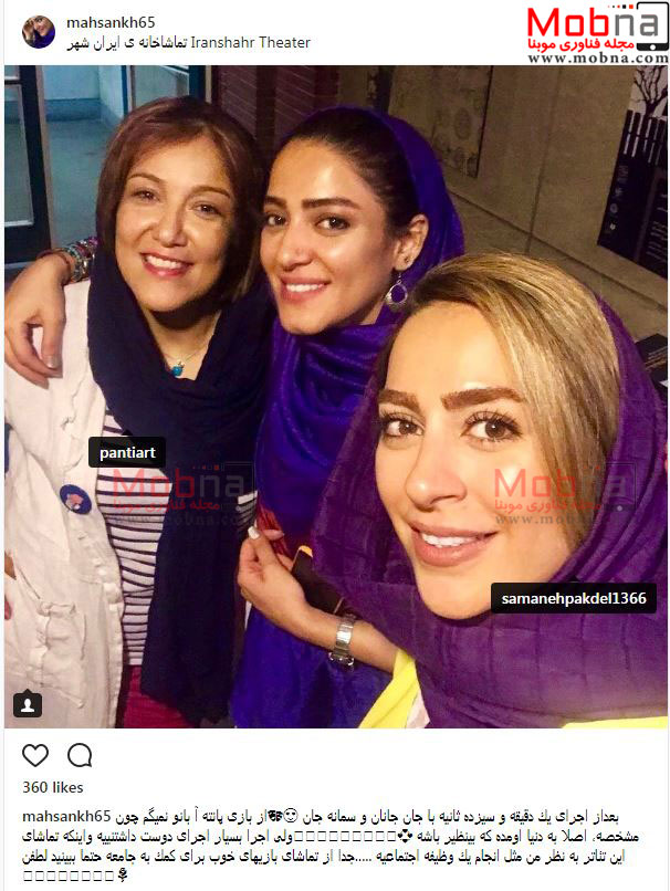 سلفی سمانه پاکدل به همراه پانته آ بهرام در پشت صحنه یک نمایش (عکس)