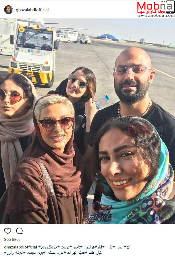 سلفی حدیثه تهرانی و همسرش به همراه دوستانشان در باند فرودگاه (عکس)