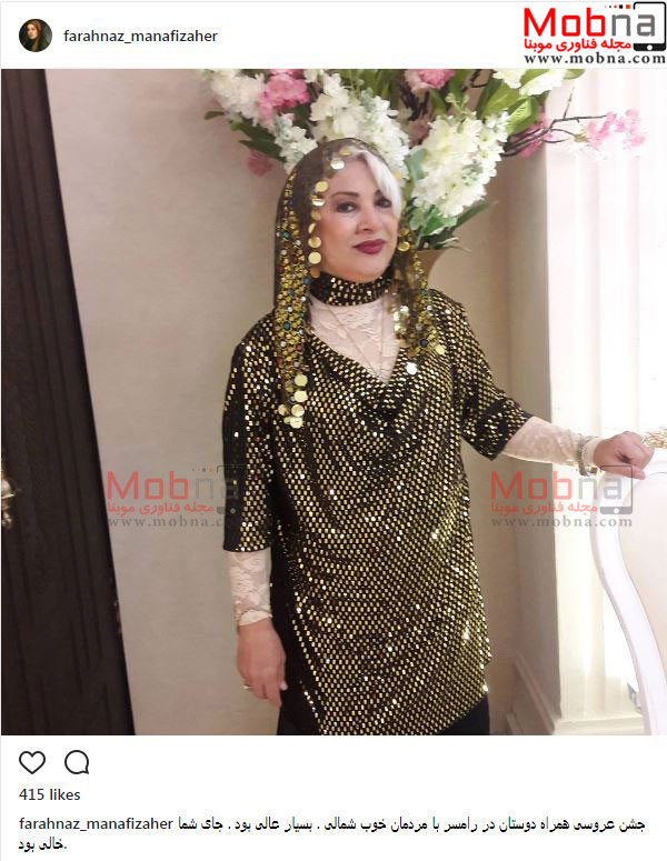 پوشش و میکاپ فرحناز منافی ظاهر در جشن عروسی (عکس)