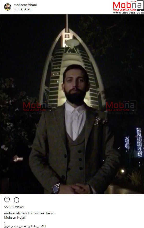 ادای دین عجیب محسن افشانی به شهید حججی، زیر برج العرب (عکس)