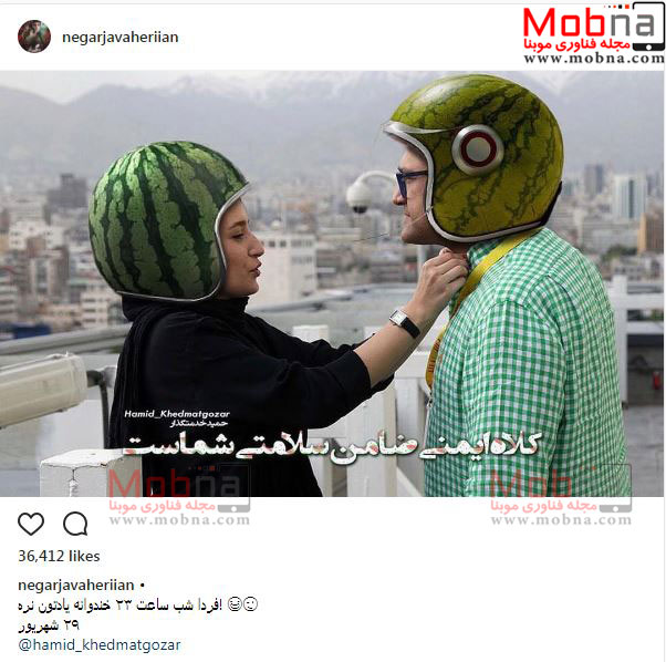کلاه ایمنی هندوانه ای رامبد جوان و همسرش برای آخرین برنامه خندوانه (عکس)