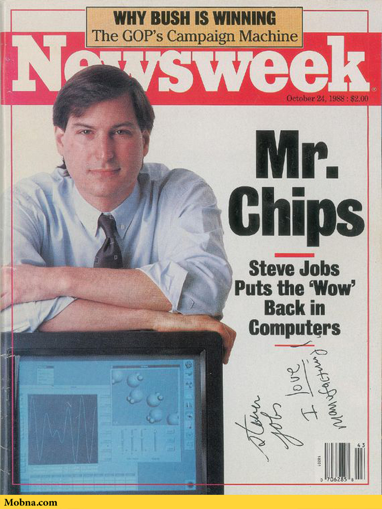 یکی دیگر از اجناسی که در این حراجی ارایه خواهد شد یک نسخه از نشریه «نیوزویک» است که تاریخ در شده روی آن به ۲۴ اکتبر ۱۹۸۸ میلادی برمیگردد. روی جلد مجله تصویر جوانی «استیو جابز» چاپ شده و تیتر آن به این صورت نوشته شده است: «آقای تراشهها. استیو جابز تعجب را به دنیای رایانهها برگرداند». جلد این مجله با خط جابز امضا شده و مدیرعامل اسبق اپل زیر آن نوشته است: «من تولید را دوست دارم». پیشبینی میشود این نشریه با قیمت بین ۱۰ هزار تا ۱۵ هزار دلار فروخته شود.
