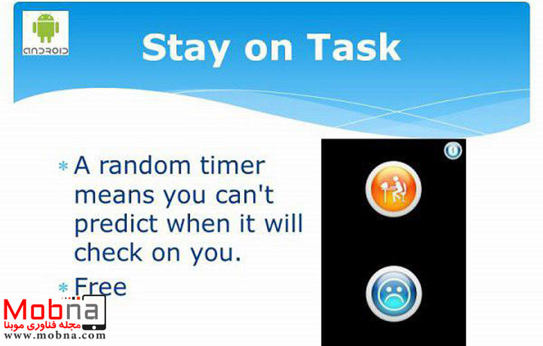 این اپ نیز تا حدود زیادی مشابه برنامه قبلی است. اگر نویسنده، هنرمند، فردی در حال تحصیل هستید و یا به هر فعالیت دیگری اشتغال دارید، به کمک این برنامه قادر به برنامه ریزی بهتر و کنترل میزان استفاده از اینترنت خواهید بود. در واقع تنها کاری که برنامه انجام می دهد، یاری به کاربر در راستای حفظ تمرکز است. StayOn Task برای دستگاه های اندرویدی قابل دانلود خواهد بود.