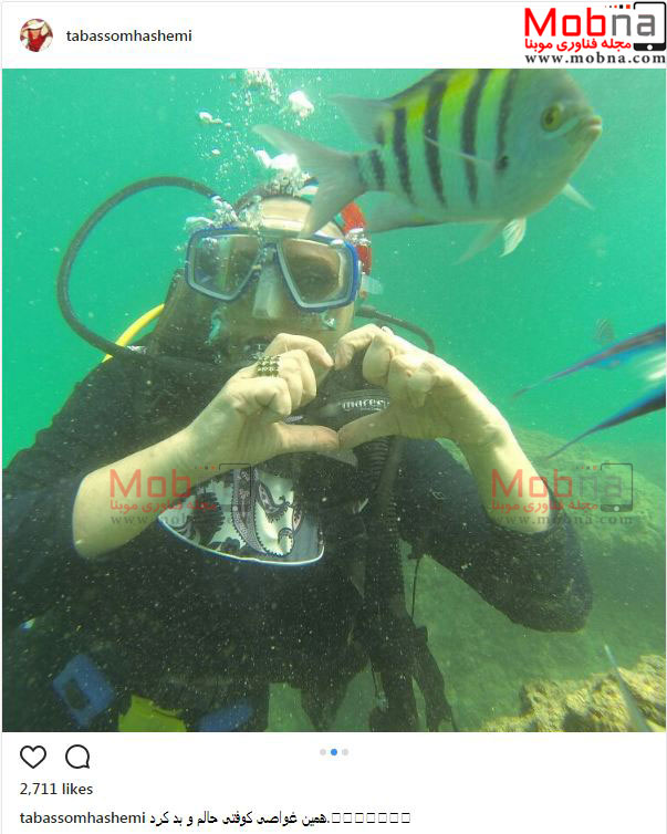 تبسم هاشمی با لباس غواصی در جزیره کیش (عکس)