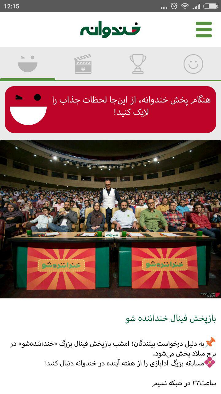 اپلیکیشن خندوانه در این قسمت تمامی وقایعی که در برنامه تلویزیونی رخ میدهد را مخابره میکند، این وقایع میتواند سخن یا یاداشتی از یک کمدین باشد یا دعوت بینندگان به قسمتی از برنامه، عکس های برتر و…. بنابراین اگر طرفدار خندوانه هستید و میخواهید زودتر در جریان رویدادهای برنامه قرار بگیرید این بخش را دنبال کنید.