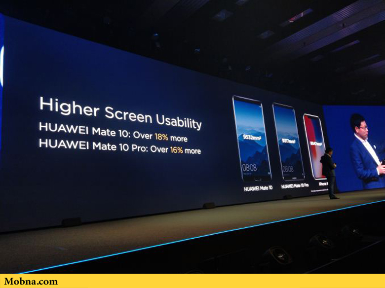 ۸:۱۲ صبح: ۹۵۳۲ میلیمتر مربع نمایشگر روی گوشی Mate 10، و ۹۳۱۷ میلیمتر مربع نمایشگر روی گوشی Mate 10 Pro