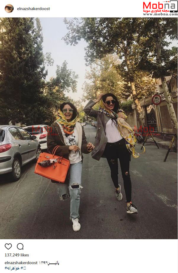 پوشش و ظاهر عجیب الناز شاکردوست به همراه خواهرش، وسط خیابان (عکس)