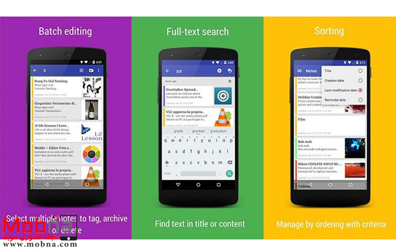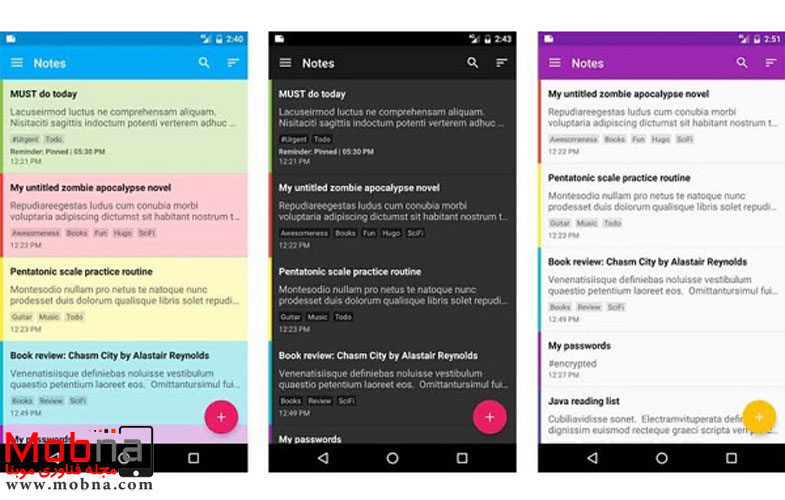 این برنامه یکی از محبوب ترین اپ های مخصوص یادداشت برداری اندرویدی است. با استفاده از ColorNote می توانید اقدام به تهیه لیستی از کارهای روزانه خود کنید و بدین ترتیب هیچ فعالیتی را از یاد نخواهید برد. از جمله دیگر امکانات این اپ می توان به امکان تغییر رنگ پس زمینه، پشتیبانی از تقویم و همچنین ذخیره سازی یادداشت ها در حافظه داخلی گوشی اشاره کرد. ColorNote به صورت رایگان قابل دانلود خواهد بود.