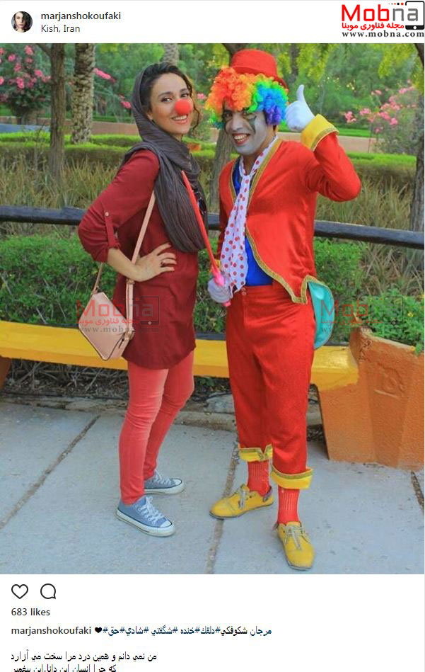 دلقک بازی مرجان شکوفکی در جزیره کیش! (عکس)
