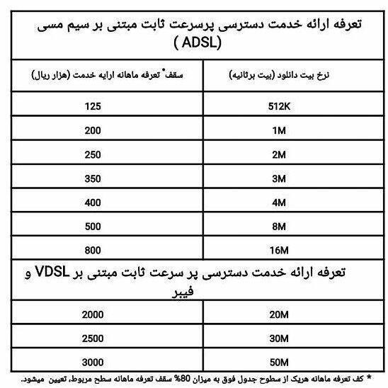 ۵. تأکید مجدد میشود که این تعرفه صرفا برای دسترسی ثابت است.