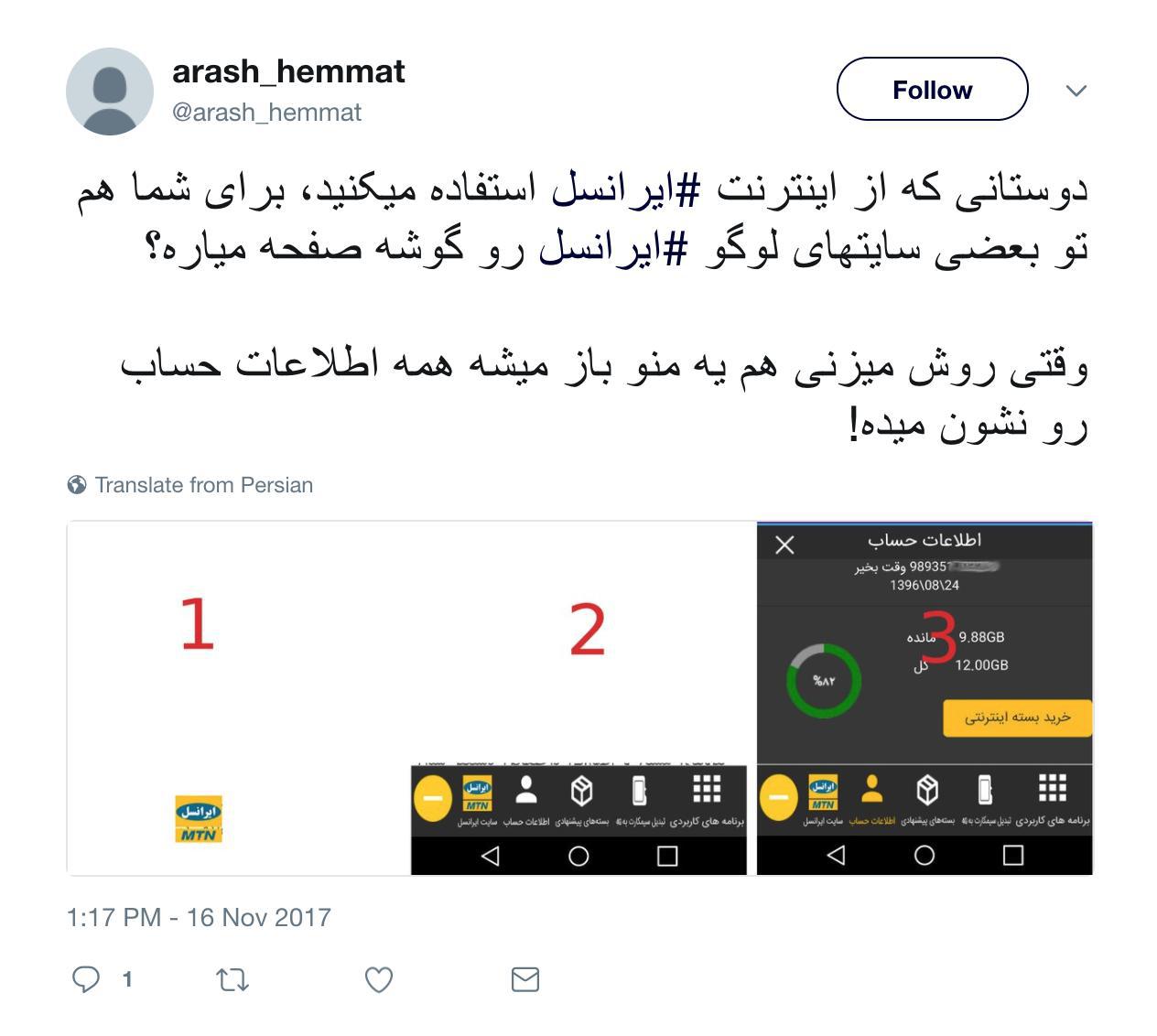 اگر کاربر دیتای ایرانسل هستید به احتمال زیاد در زمان مراجعه به برخی از وبسایتهای پربازدید ایرانی مانند سایت رسمی برنامه ۹۰ یا دیجیکالا با یک لوگو یا تولبار ایرانسل در پایین نمایشگر روبهرو شدهاید؛ قابلیتی که اعتراض کاربران و همچنین برنامهنویسان را به دلیل نقض حریم خصوصی در پی داشته اما ایرانسل میگوید که این یک قابلیت جدید است و آن را برای سهولت در دسترسی به پنل کاربری در سایتهای پربازدید قرار میدهد.