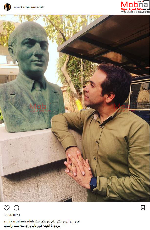تیپ و ژست جالب امیر کربلایی زاده در کنار سردیس دکتر علی شریعتی (عکس)