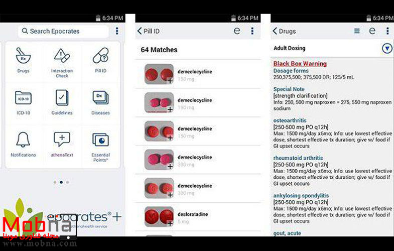 Epocrates برنامه ای حرفه ای با امکانات متعدد برای تمام کسانی است که به دنبال یک اپ همه فن حریف در دنیای پزشکی هستند. از طریق این اپ می توانید به اخبار پزشکی، اطلاعات تجویز دارو دسترسی داشته باشید و حتی داروی مورد نظر را از روی شکل ظاهری آن شناسایی کنید. امکان محاسبه فاکتور هایی همچون BMI و GFR نیز وجود خواهد داشت. البته نمی توان Epocrates را با کیفیت ترین برنامه پزشکی موبایلی به شمار آورد، اما با این حال هرآنچه که نیاز خواهید داشت را در خود جای داده است. در مجموع بهره برداری از این برنامه برای افراد حرفه ای در زمینه پزشکی بسیار راحت تر از افراد عادی خواهد بود. Epocrates به صورت رایگان قابل دانلود است.