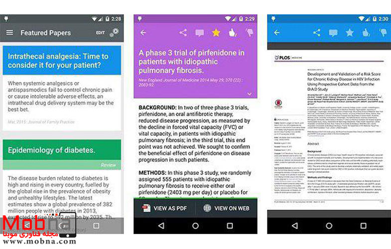 یکی دیگر از اپ های مفید و البته رایگان در زمینه پزشکی، Read by QxMD نام دارد. هدف اصلی طراحی این برنامه اطلاع رسانی به کاربران در مورد جدید ترین دستاورد های علم پزشکی و موضوعات مرتبط خواهد بود. از این نه تنها برای افراد حرفه ای منبع مناسبی محسوب می شود، بلکه مردم عادی نیز به راحتی می توانند با آن کار کنند و از مزایای مختلفی که در اختیار کاربران قرار می دهد، بهره مند شوند. علاوه بر موارد فوق امکان دانلود فایل ها به صورت پی دی اف برای مطالعه در اوقات فراغت نیز وجود خواهد داشت. لازم به ذکر است که در Read by QxMD بیش از ۱،۰۰۰ مقاله با عناوین مرتبط گردآوری شده اند و دسترسی راحت به آن ها مقدور خواهد بود. برنامه کاملا رایگان بوده و هیچ گونه تبلیغاتی در آن دیده نمی شود.
