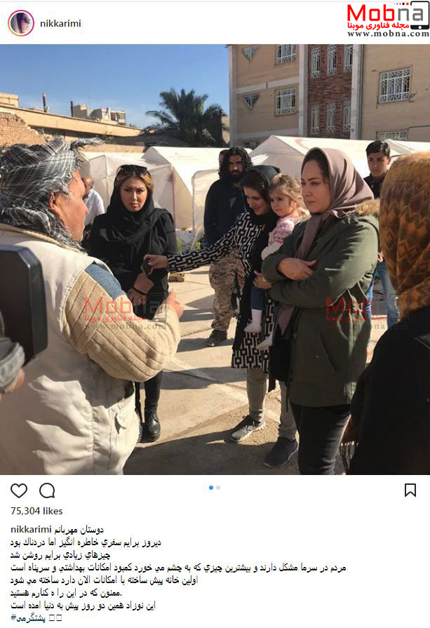 تصاویری از حضور نیکی کریمی در میان زلزله زدگان کرمانشاه (عکس)