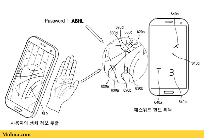 سامسونگ به تازگی یک حق امتیاز به ثبت رسانده است که قابلیت مذکور را برای گوشیهای هوشمند تشریح میکند و نشان میدهد که اسکن کردن خطوط کف دست با گرفتن یک عکس توسط دوربین گوشی چگونه انجام میشود. سپس، اگر شما رمز عبور خود را فراموش کنید، میتوانید از دورین سلفی دستگاه کمک بگیرید تا نگاهی به کف دست شما بیاندازد و با خواندن خطوط آن هویت شما را تشخیص دهد. اگر فرآیند تشخیص به درستی انجام شود،این دستگاه به شما حروف و رمز عبور متفاوت شما را اعلام میکند و به عبارت دقیقتر رمز عبور جدید شما از طریق خواندن خطوط کف دست ساخته میشود.