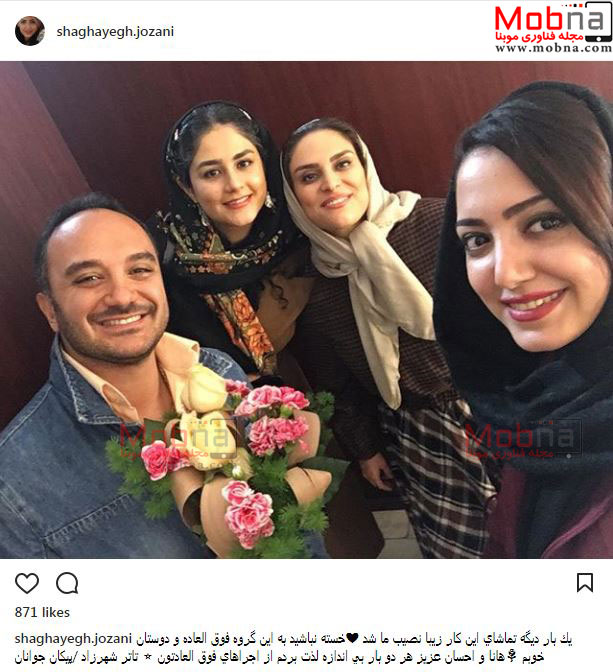 سلفی شقایق جوزانی به همراه احسان کرمی و هانا کامکار در یک نمایش (عکس)