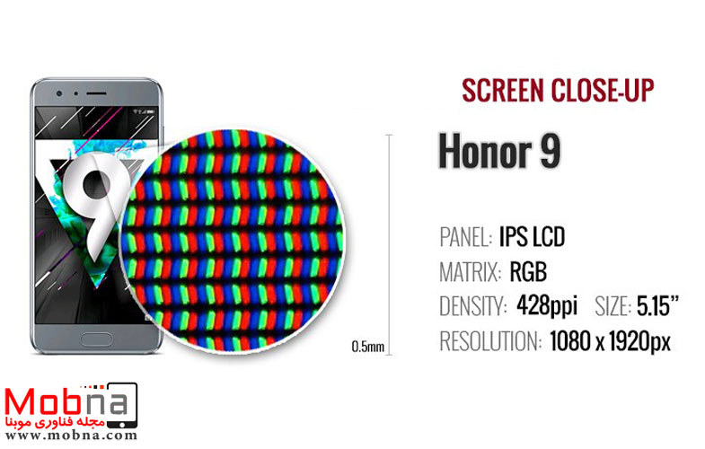 وسعت رنگ در این نمایشگر به طرز قابلتوجهی افزایشیافته است، اما رنگها همچنان به سردی متمایل هستند. ازاینرو میتوان رنگها را در بخش تنظیمات نمایشگر تغییر داد و به آن گرمی بخشید. یکی از کاستیهای آنر ۹، نبود لایه محافظ صفحه است که آن را در برابر ضربات احتمالی آسیبپذیرتر میکند.