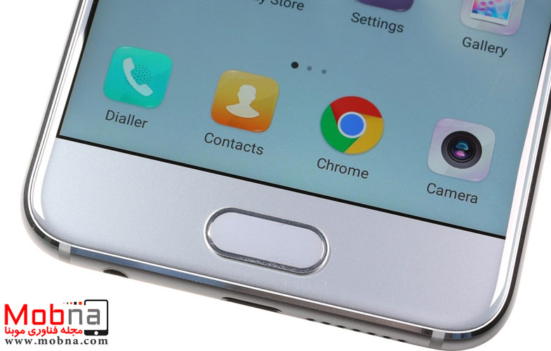 این دستگاه دارای وزن ۱۵۵ گرم هست. در بخش جلوی دستگاه، صفحهنمایش ۵.۱۵ اینچی و دکمه Home که به یک حسگر اثرانگشت تجهیز شده است را مشاهده میکنیم. در دو سمت این دکمه، دو کلید ناوبری نقطهای جایگیری شده که به تنظیمات بهتر و دسترسی آسان کاربر کمک فراوانی میکند.