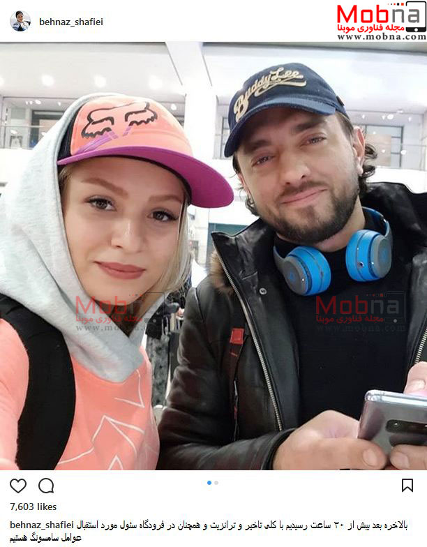سلفی دختر موتور سوار ایرانی به همراه بهرام رادان در فرودگاه سئول (عکس)