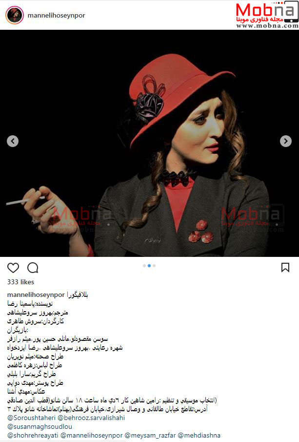 پوشش و گریم مانلی حسین پور در یک نمایش (عکس)