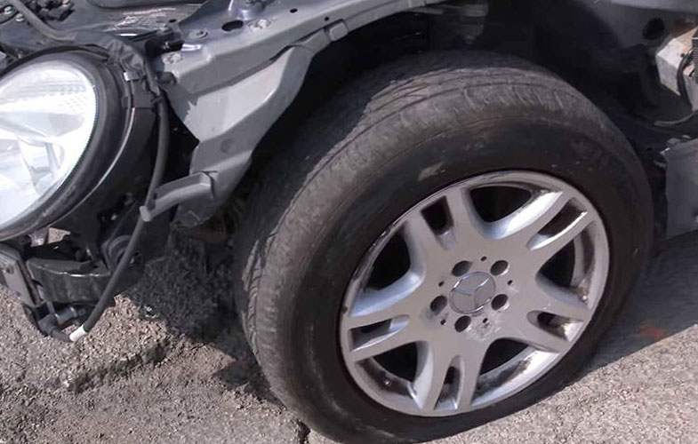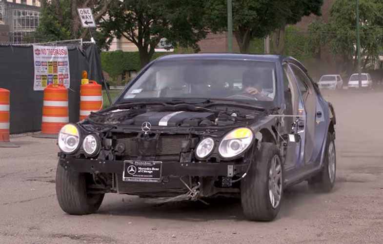سرانجام در تلاش چهارم و سرعت ۶۲ کیلومتر بر ساعت، مرسدس‌بنز E320 که گویا مانند یک تانک ساخته شده است کمی آسیب می‌بیند و تایر جلوی سمت راننده پنچر می‌شود. جالب است که در این آزمون سخت، مرسدس E کلاس که بیش از ۱۰ سال عمر دارد، فقط به یک تایر پنچر بسنده می‌کند. تیم سازنده‌ی این ویدئوی جالب اشاره می‌کند که در قسمت سوم سری «شکنجه دادن سیستم تعلیق مرسدس» آزمایش‌های بسیار شدیدتری تدارک می‌بیند.