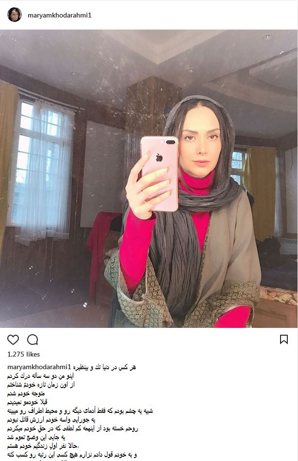 سلفی آینه ای مریم خدارحمی، با پوشش و ظاهری متفاوت (عکس)