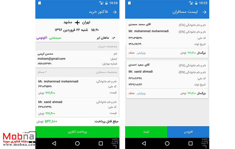 در گام بعد، گزینه «خرید» را لمس کنید. مشخصات خود و همراهانتان را در قالب اطلاعاتی نظیر نام و نام خانوادگی، کد ملی، تاریخ تولد و … در صفحه مربوطه ثبت و پس از تایید ایمیل و شماره همراه خود، وارد درگاه خرید شوید.